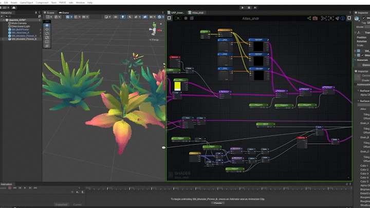 The Unreal Game Engine is designed to simulate the behavior of real light and natural materials. Since our goal was to create an immersive and evolving illustrated world we had to build several artist friendly shaders and materials.